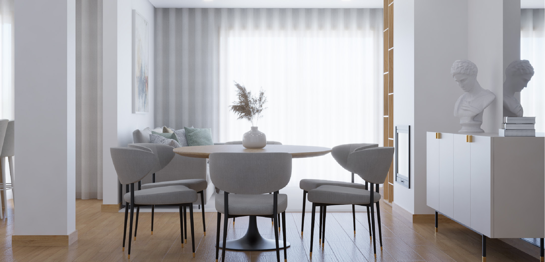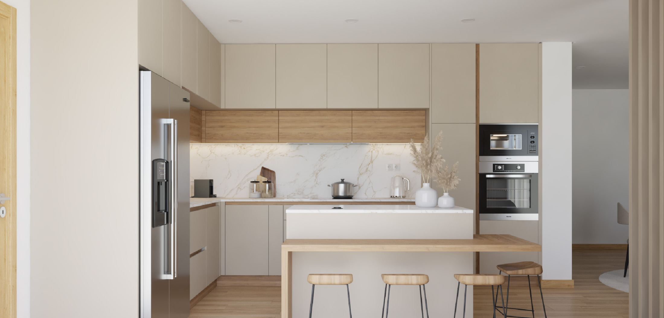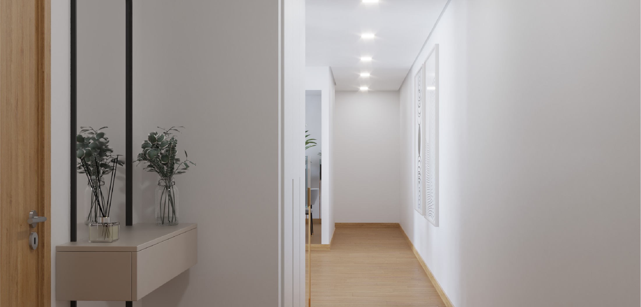 O design moderno reúne as várias vertentes de criação de lugares, gestão ambiental, equidade social e viabilidade económica na criação de lugares com beleza e identidade distintas. Seja amantes de tons mais escuros e uma decoração mais rústica, ou amantes de uma decoração mais clara e uma decoração mais natural, preservando a simplicidade. Neste projeto, ficamos completamente apaixonados pela harmonia entre os diferentes espaços. Seja a ligação da cozinha com a sala em Open Space, que permitem um maior convívio e socialização entre as pessoas, mas também a luz.