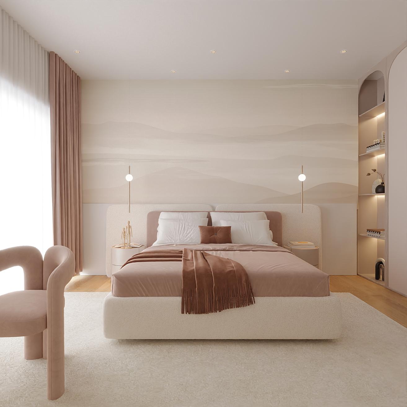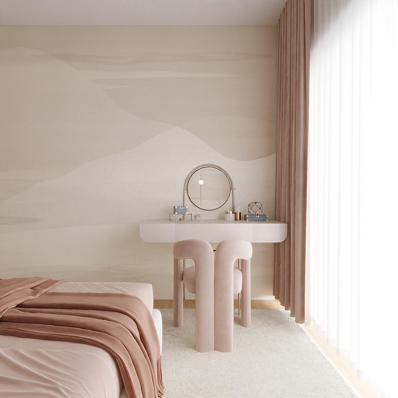 Este quarto nasce da fusão entre delicadeza e presença. Um espaço onde cada linha, cada textura e cada gesto de luz foram pensados para criar uma atmosfera de requinte absoluto e feminilidade intemporal. A paleta suave, envolvida por tons aveludados e neutros luminosos, desenha um cenário sereno que eleva o quotidiano a uma experiência de luxo discreto.